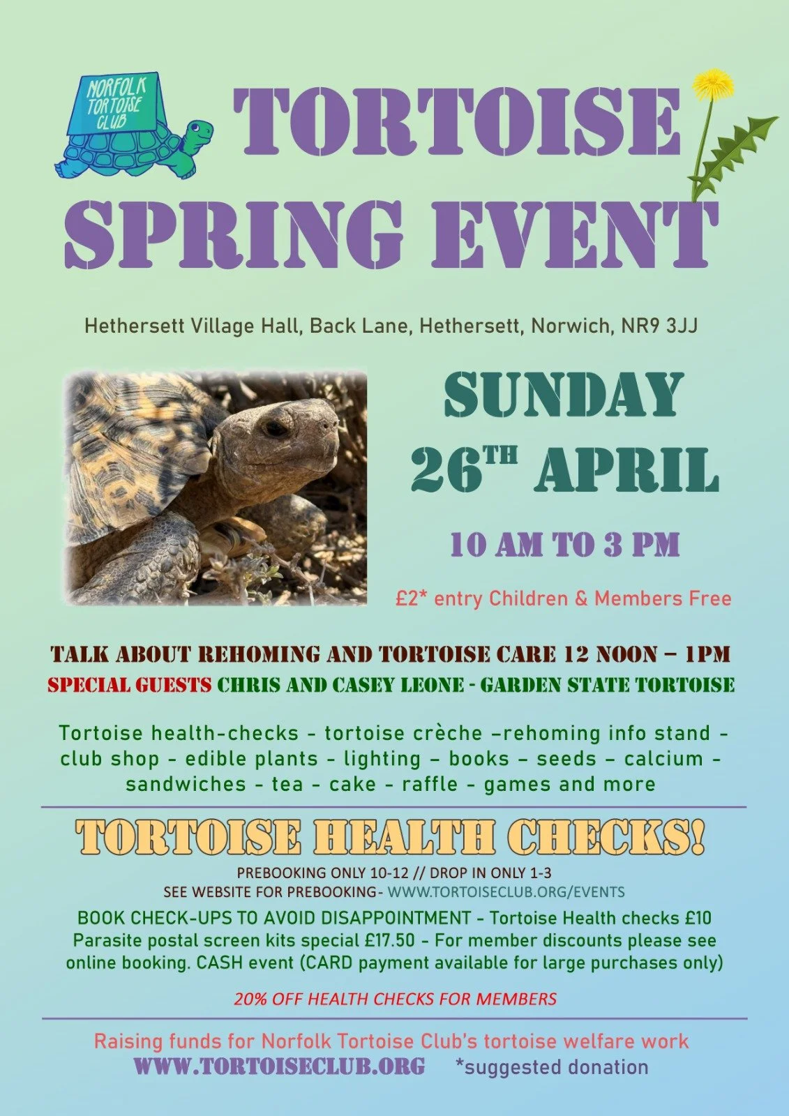Spring talk and check-up event - Sunday 26th April 10-3